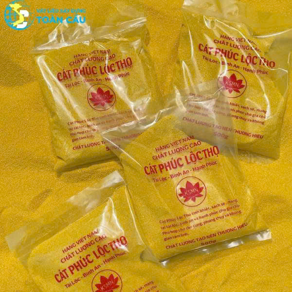 Với màu vàng óng ánh tự nhiên, hạt đều và sạch, cát Kim Sa không chỉ mang lại vẻ đẹp sang trọng, trang nghiêm mà còn thể hiện sự tinh khiết và thành tâm của gia chủ.
